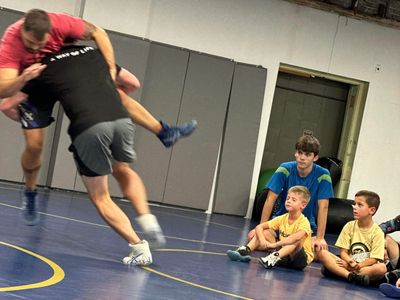Practice involves: Warm-up and stretching, technique, drilling technique, live wrestling, and occasionally games. The goal of practice is to develop wrestling fundamentals in an enjoyable atmosphere where all wrestlers can learn. Wrestlers are expected to listen and follow the Code of Conduct. Parents are encouraged to watch and learn, and we are always looking for volunteers who have a wrestling background or experience working with kids.